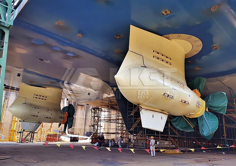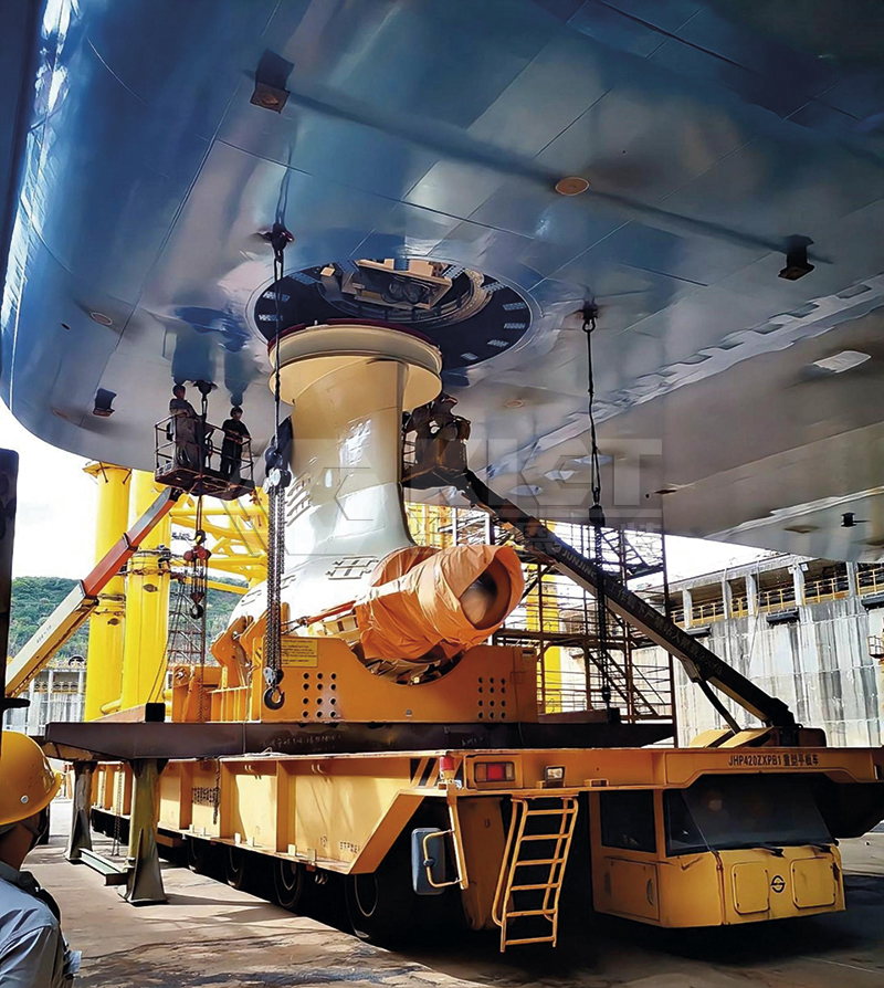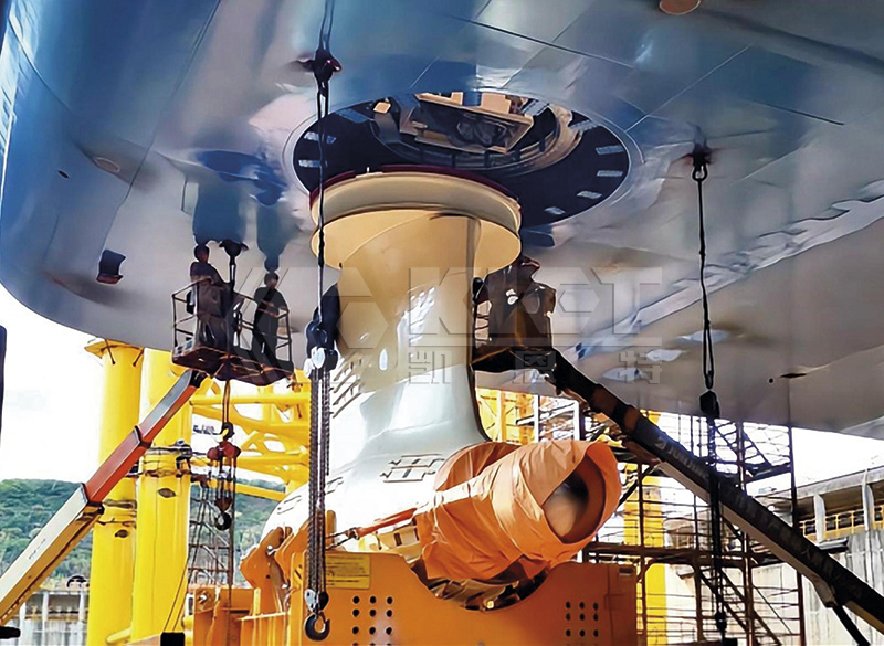 全自动三维调整液压设备用于船舶螺旋桨精调安装。