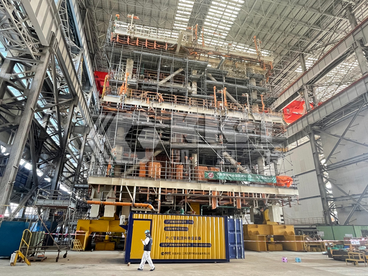 冷箱模块同步称重,使用5套PLC多点同步称重液压系统,配套20台300T称重液压千斤顶同步顶升称重。