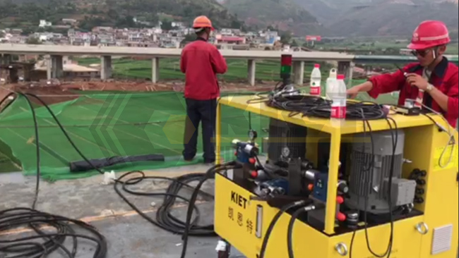 11-19 477次钢绞线液压千斤顶对拉合拢视频 -